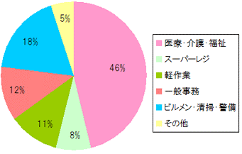 | 【ある一ヶ月間の都内5エリアのしごと情報アイデム掲載職種別グラフ】 |