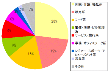 | やはり他の新聞折込媒体同様、地域での募集要素の高い 医療・介護・福祉系の仕事のシェアが高い数値が出ています。 |