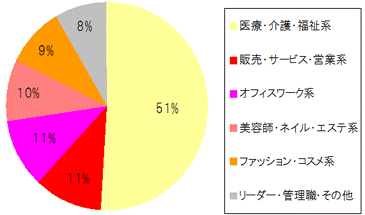 看護師や介護職に代表されるように女性の活躍できる職種の掲載率が上位となっています。 |