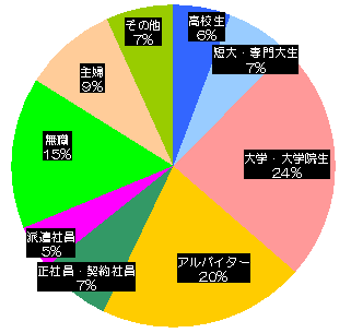 | 【ある4週間のweban3サイトの掲載職種別グラフ】 |