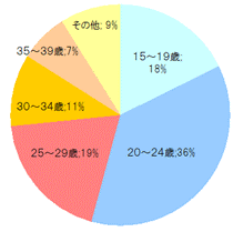 性別に見ると、女性が61.5%、男性が38.5%となっています。 年齢層別では、「20歳〜24歳」(36.2%)がもっとも多く、次いで「25歳〜29歳」(19.2%)、「15歳〜19歳」(17.9%)となっています。 20代のユーザーの占める割合が50%を超え、10代を含めると約70%になります。非常に若年層の利用率の高い媒体です。 |