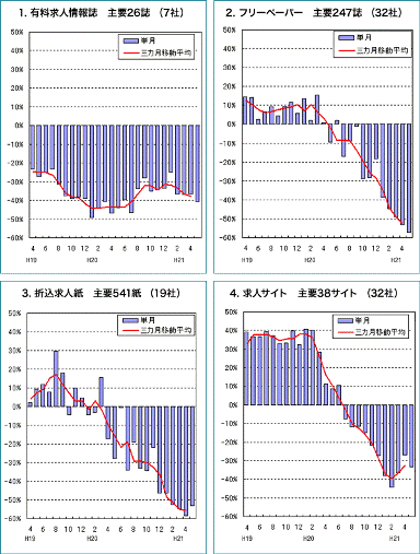 | 上記グラフは全国求人情報協会の求人広告掲載件数等集計結果(H21.5月より) |